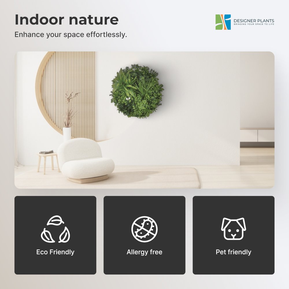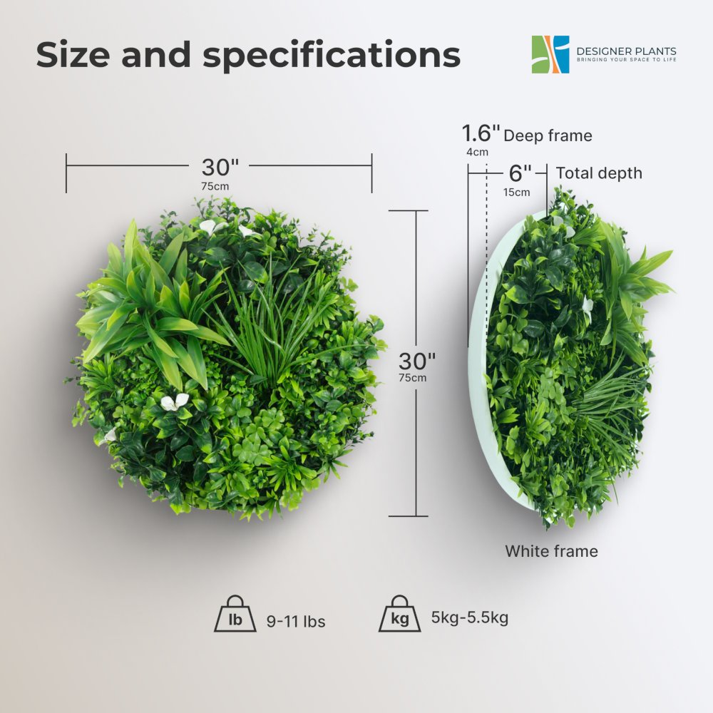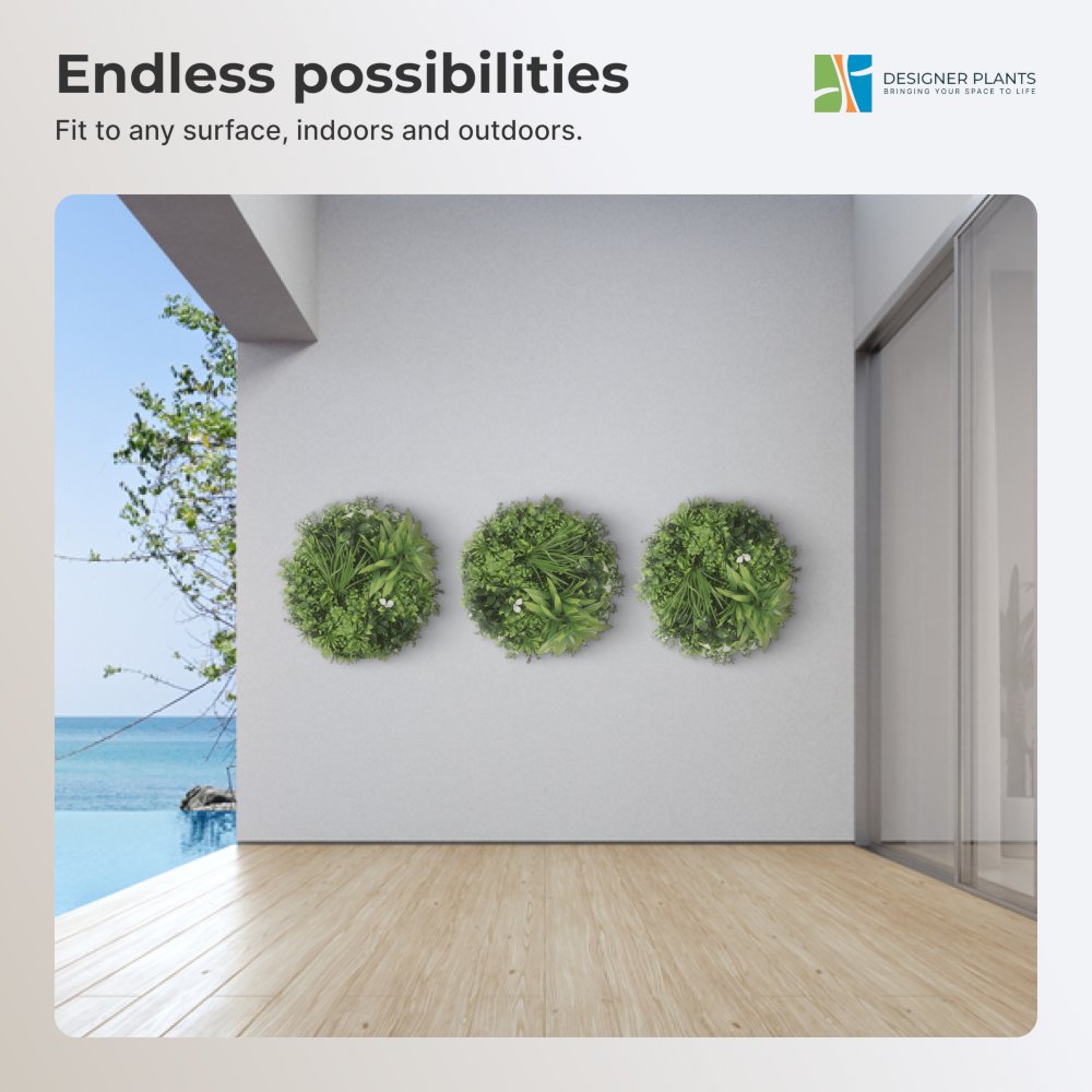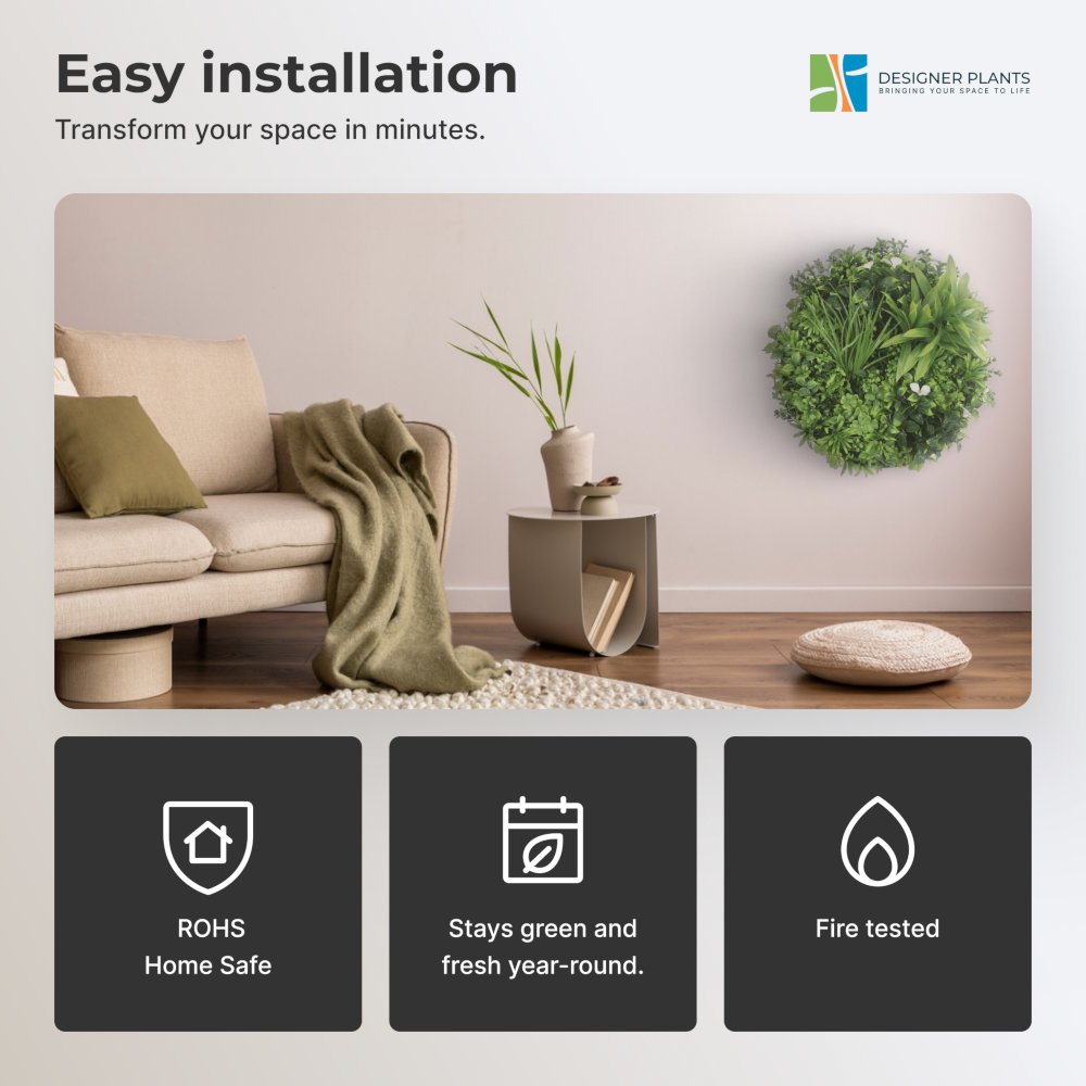 The best thing about having this faux living wall disc is that you won't need to water, trim, or care for it like a real plant. It only requires very low maintenance and is amazingly easy to install - just like putting up a picture frame. It could be the very best piece of decor you'll ever own.