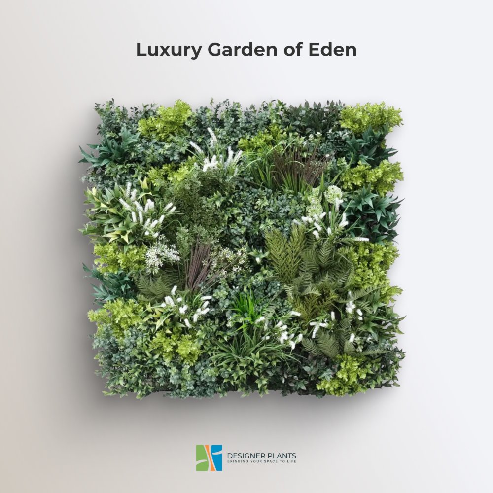 This stunning artificial living green wall panel has been exclusively designed to transform a space and provide a sanctuary for the senses. It’s the perfect high-impact and maintenance-free statement piece that draws people’s eyes, brings the outdoors inside and makes everywhere feel wonderfully fresh and alive. The hand-assembled panel features an abundance of verdant greenery and flowering stems that look and feel realistic, down to every botanically correct detail. While the combination of plants has been specially chosen to complement each other, extra plants can be added on request to make the design truly work for you.