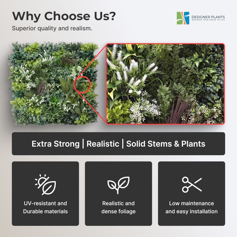 Crafted from premium materials, these faux plant panels promise durability and resistance to fading, ensuring that your green haven stands the test of time.