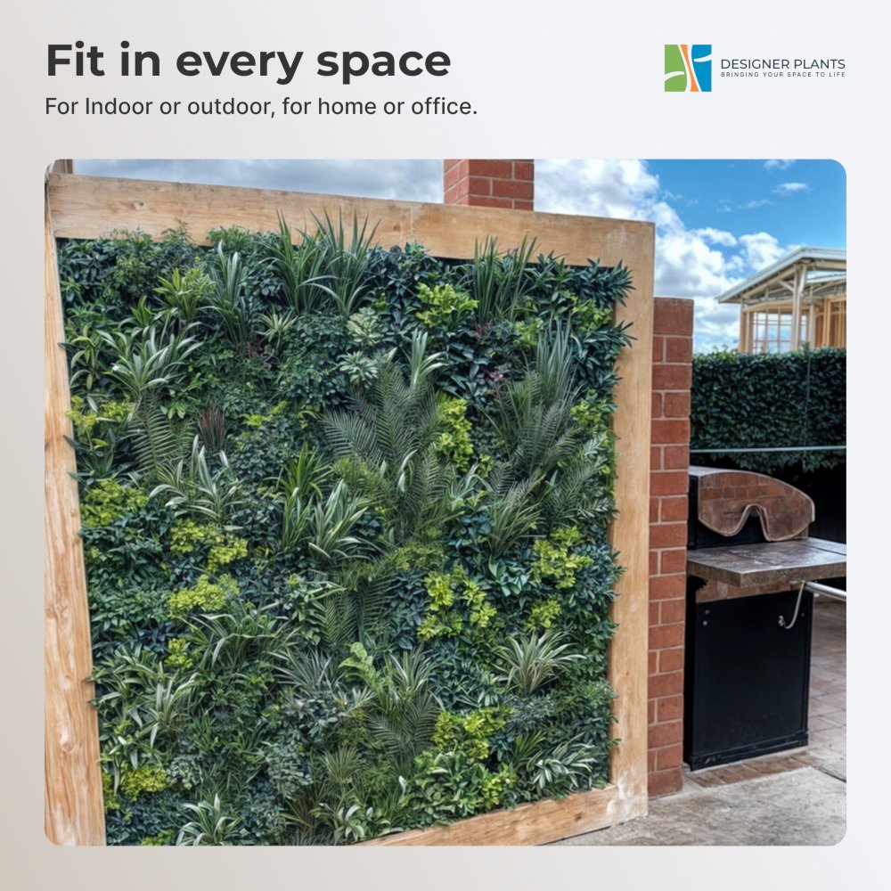 Our realistic artificial living wall panel has been UV-engineered to make it suitable for external use. As a result, the plants will not discolor or fade even in the harsh Aussie sunlight – backed up by our industry-leading 5-year guarantee. The fake green wall panel has been fire-tested; making it suitable for use in commercial and domestic environments.