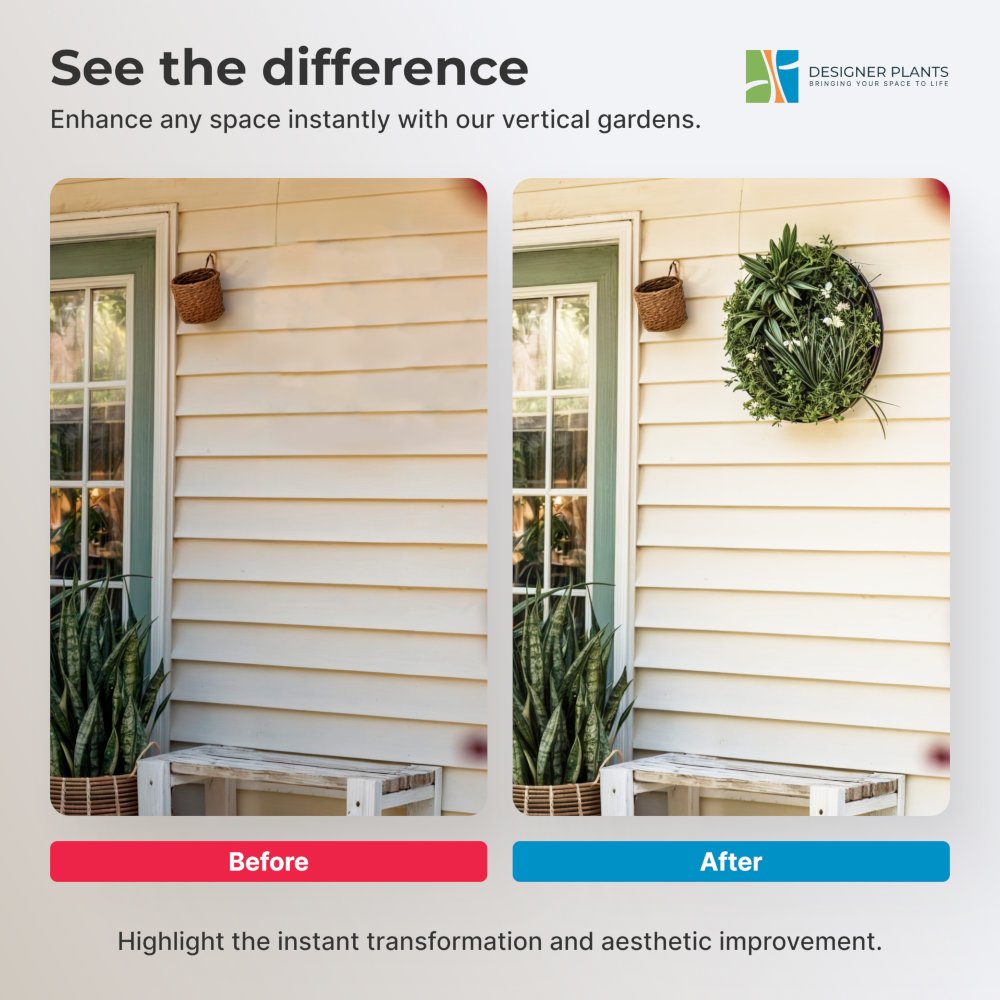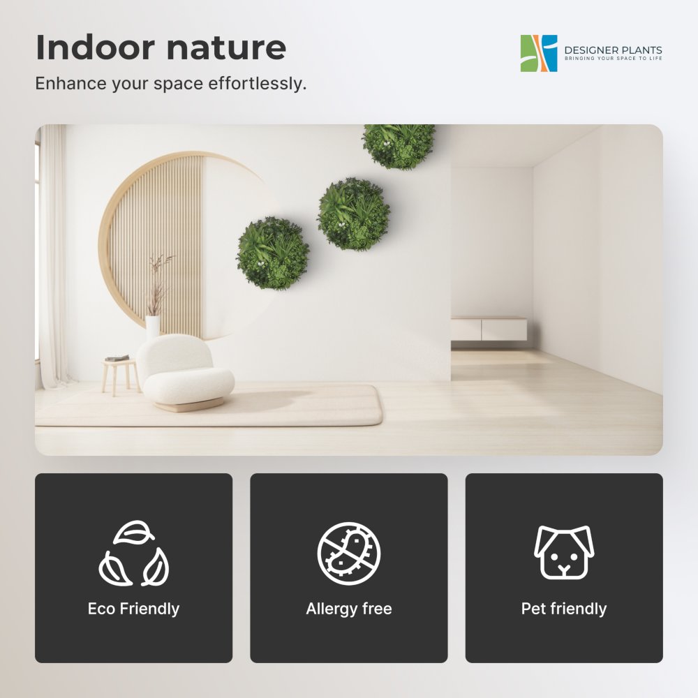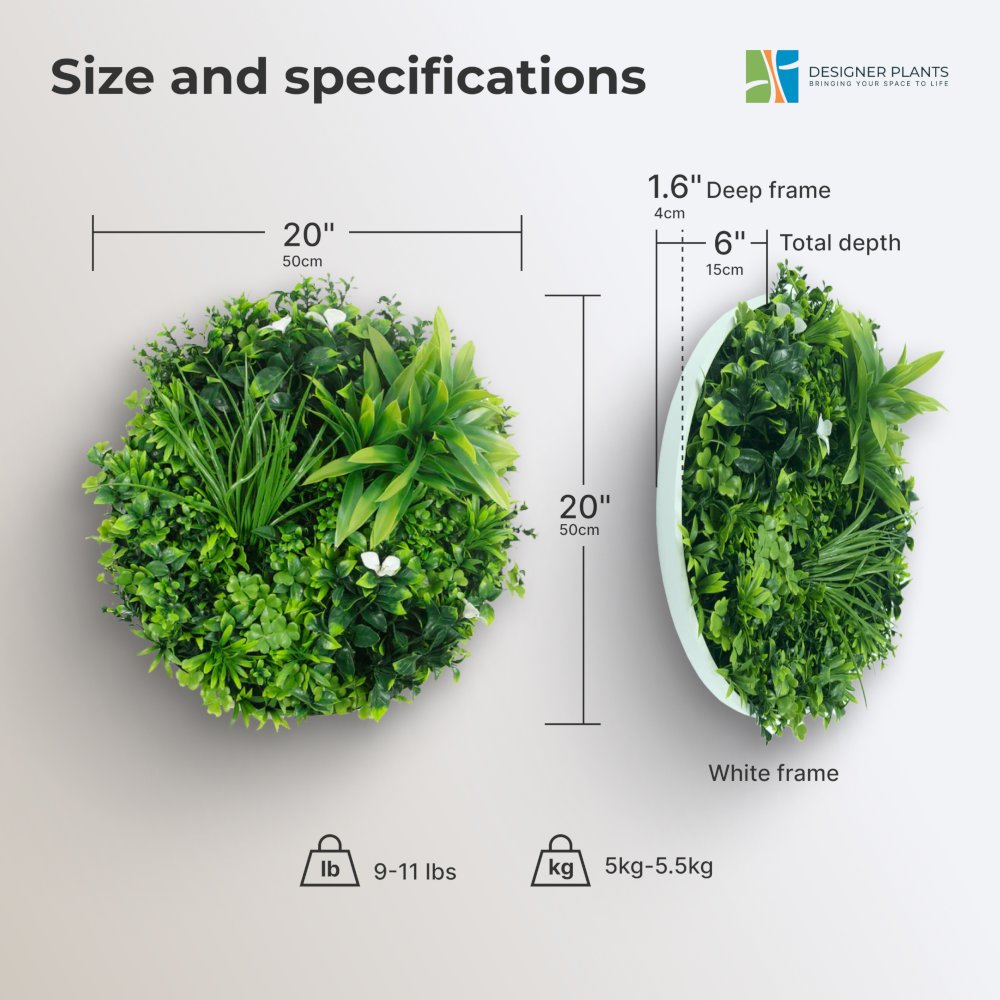 Un jardín vivo es hermoso, pero se necesita mucho trabajo para mantenerlo. Con nuestro elegante arte de pared viviente, puede lograr ese aura totalmente natural durante los próximos años sin mover un dedo. Es muy fácil de instalar y está fabricado con materiales duraderos de alta calidad.