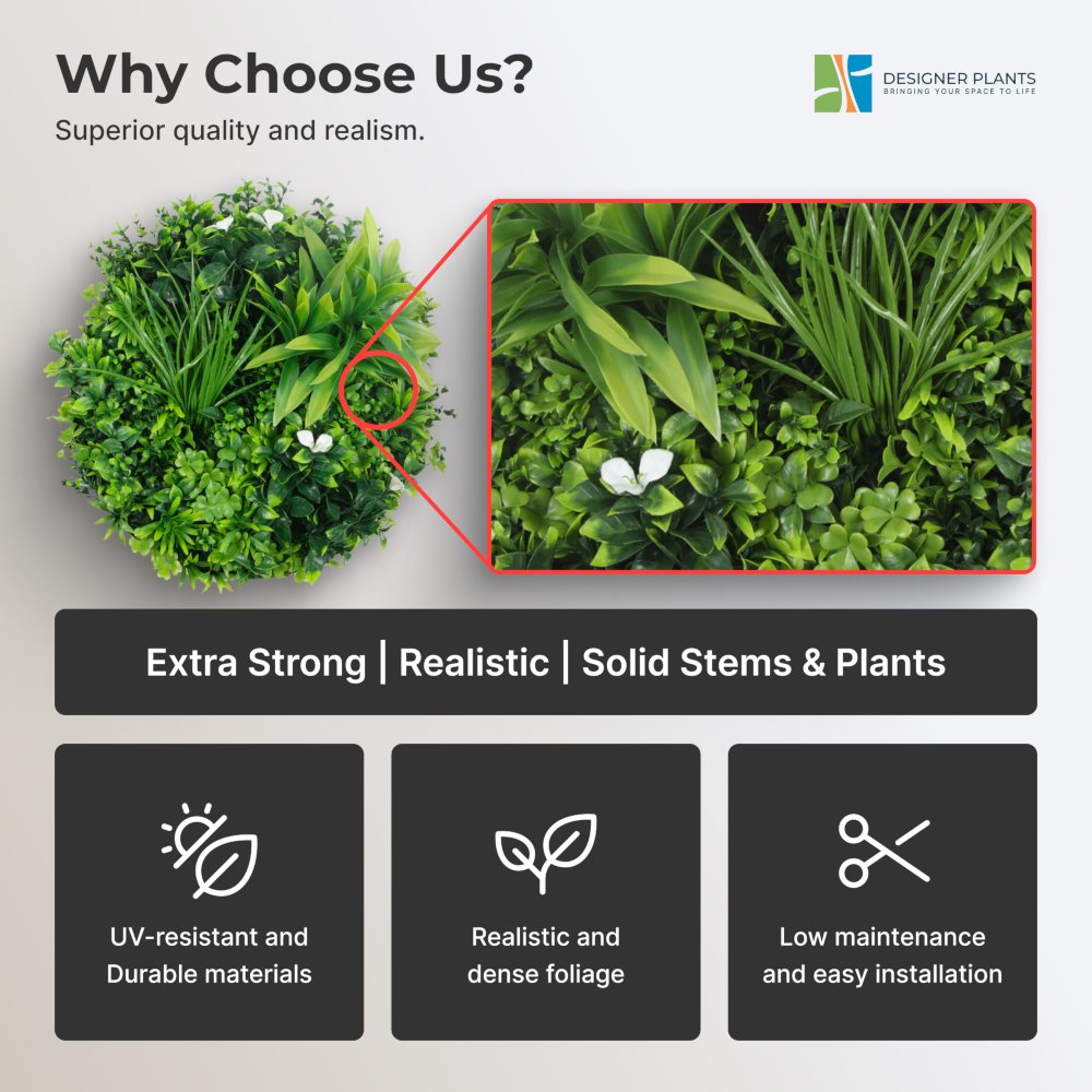Crafted from premium materials, these faux plant panels promise durability and resistance to fading, ensuring that your green haven stands the test of time.