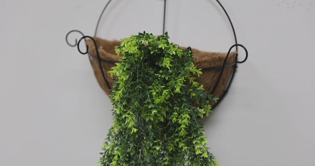 Most Designer Plants hanging specimens include a hook or loop for direct suspension from ceiling hooks, brackets, or pergola beams. They can also be draped over railings or woven through trellises. No specialist hardware required.