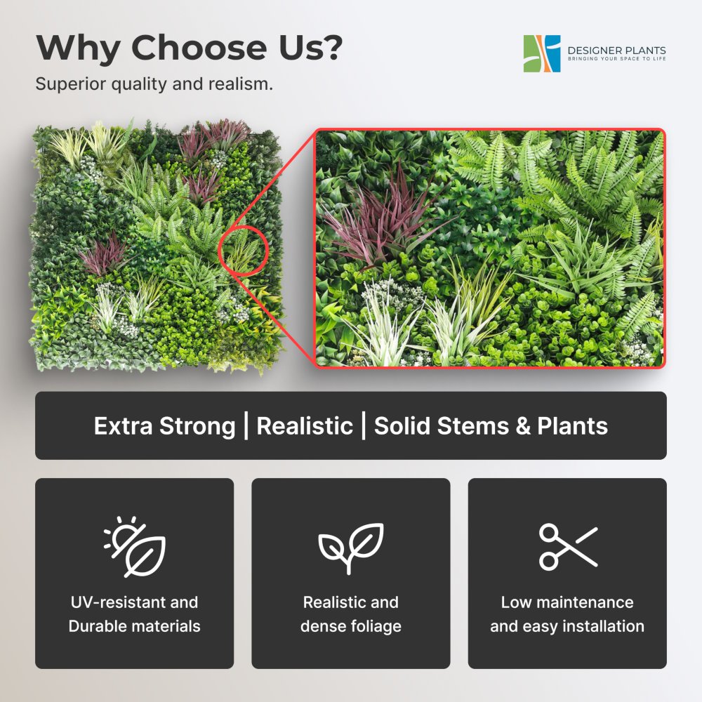 Crafted from premium materials, these faux plant panels promise durability and resistance to fading, ensuring that your green haven stands the test of time.