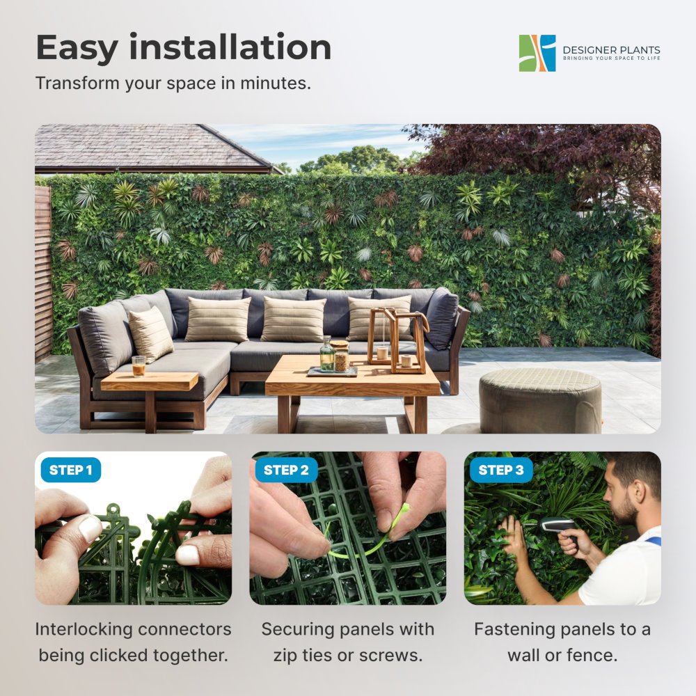 Ya sea que desee crear una impresionante pared decorativa en su sala de estar, una pieza llamativa a lo largo de su cerca o simplemente impresionar a sus amigos y familiares, este maravilloso panel de pared verde animará cualquier espacio monótono de forma rápida y sencilla.