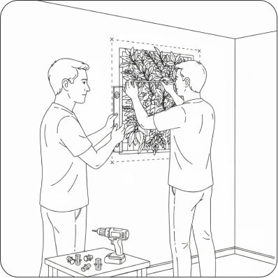 Our premium vertical garden range is effortless to install, no specialist tools, no complicated fixings. Just a few basic items from home or your local hardware store, and your green wall is ready to transform your space in minutes.